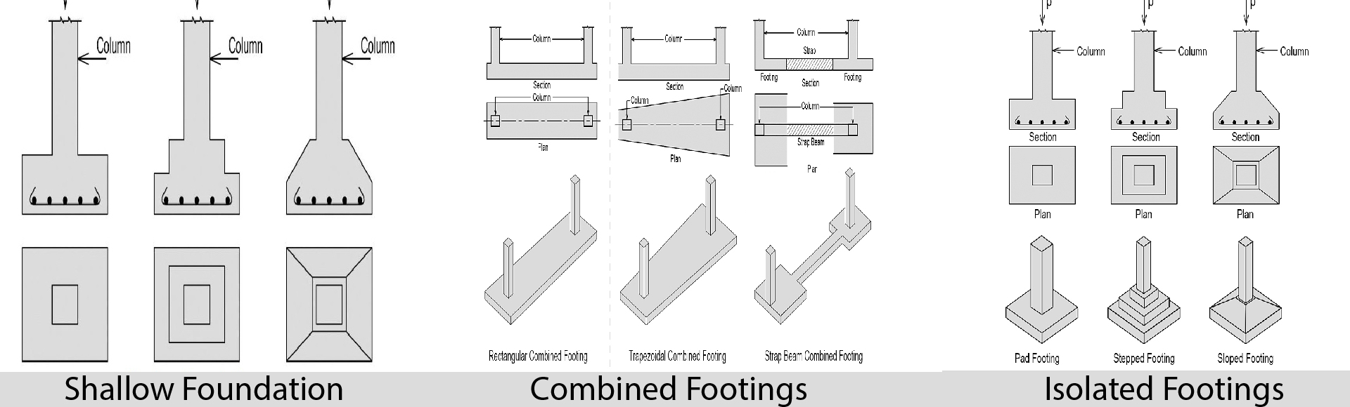 Shallow foundations can be broadly classified into two – Footings and Raft.