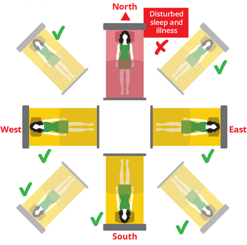 Sleeping directions according to Vastu are guidelines to sleep in a way so that you receive favourable energies and reject unfavourable ones. Each direction has its own effect on the person sleeping. But, as per Vastu, you are free to sleep with your head in any direction EXCEPT NORTH.